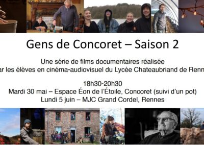 Pour ce qui est des projections, il y a eu plusieurs séances où nous avons pu échanger avec le public : une à Rennes et une à Concoret à l’été 2023.